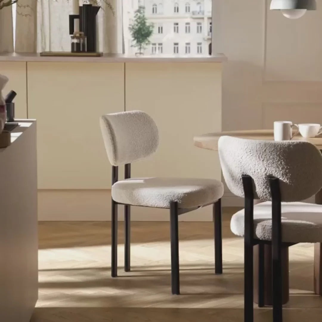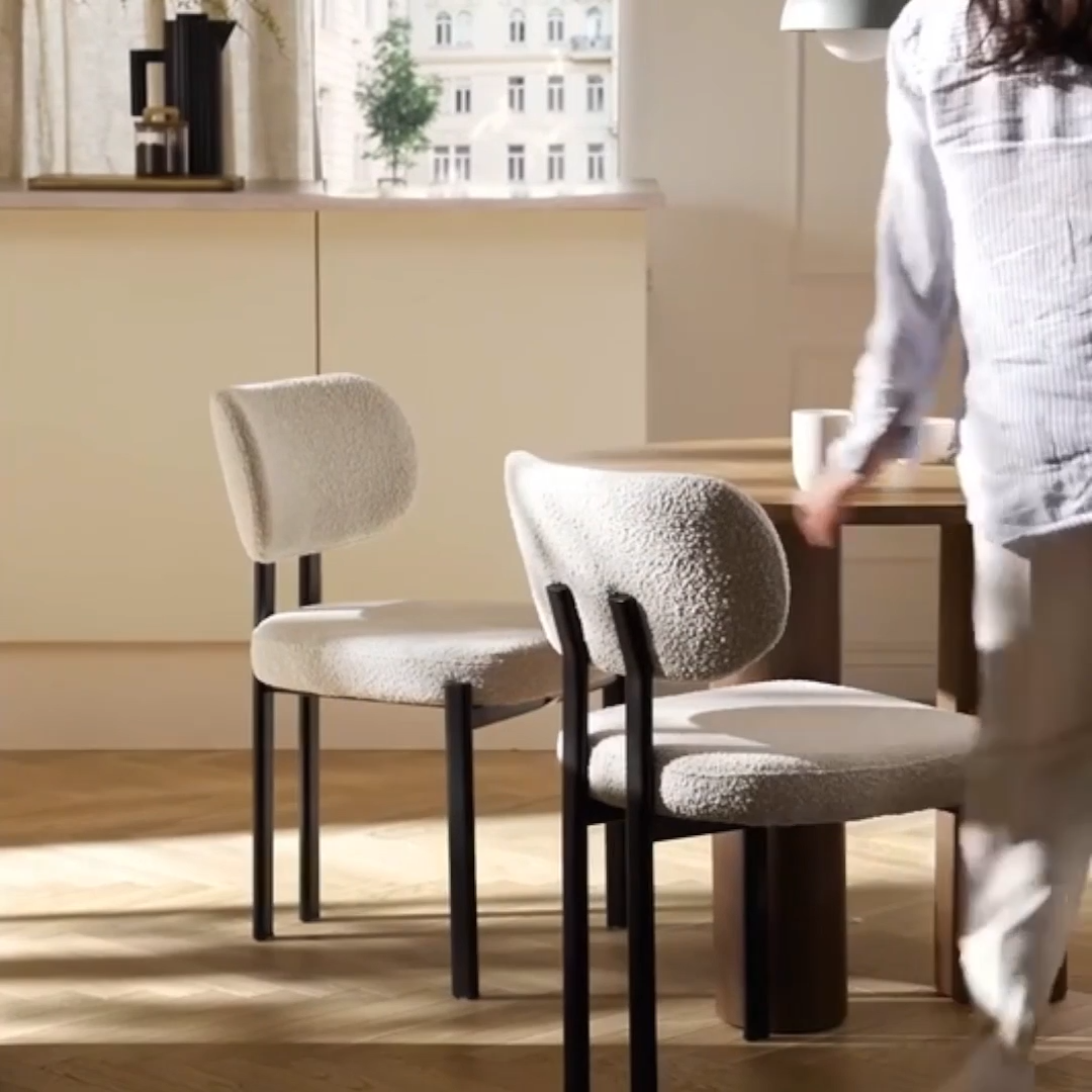 Redécouvrez vos repas avec la chaise RUBY, une pièce qui associe design moderne, confort et robustesse. Sa structure en métal de haute qualité lui assure une longévité remarquable, tandis que son revêtement en tissu bouclé doux et texturé apporte une touche chic et raffinée à votre intérieur.